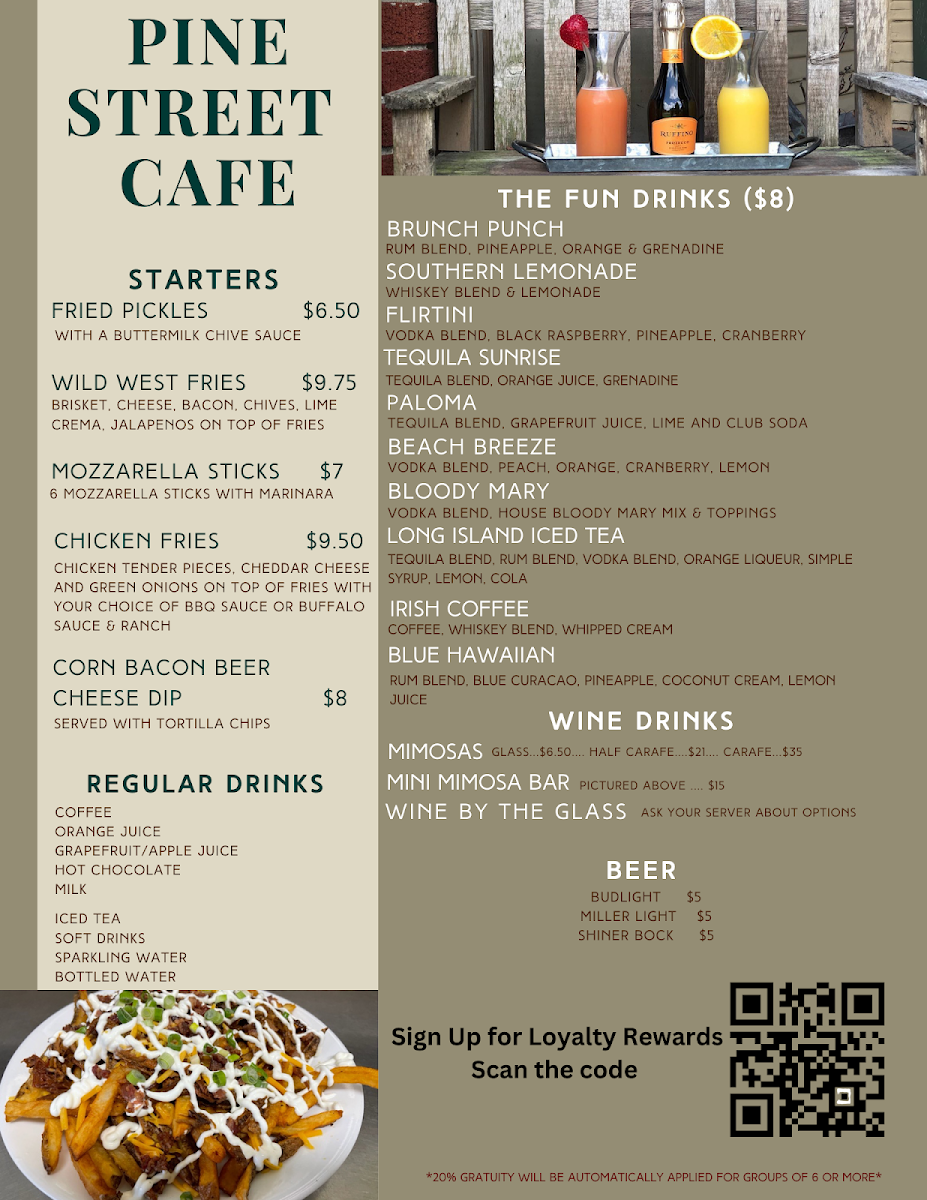 Guests also appreciate the homely feel and warm hospitality. Outdoor seating offers a delightful escape, perfect for enjoying a flight of mimosas. While some found portions a bit modest for the price, the quality and flavors are consistently praised. Whether you’re visiting for brunch or a casual lunch, Pine Street Cafe is poised to impress with its delicious offerings and charming ambience.